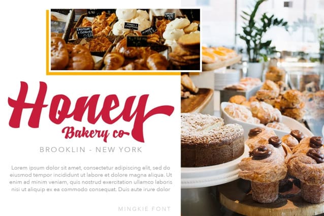 Mingkie Script Font, is a modern brush script inspired from retro font style. You can explore and combine creating rhythm for comfortable reading. Retro and refined use this font for any branding, product packaging, invitation, quotes, headline, label, poster, logo etc.
