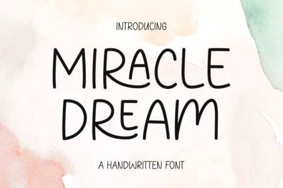 Miracle Dream Font is a cute and simple-lettered handwritten font perfect for all the chalkboard quotes and teaching materials you wish to create! Its authentic look will add a personal and realistic feel to your designs.