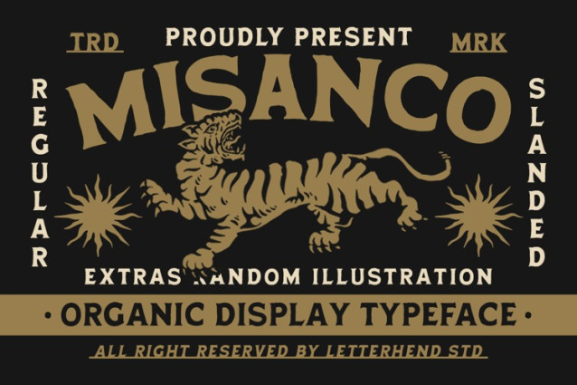 Misanco Font is an organic display typeface with a bold yet artistic personality. It carries a strong vintage-inspired style with expressive, handcrafted letterforms that feel raw and adventurous. Available in Regular and Slanted versions. Its unique shapes evoke a masculine, rugged vibe with a touch of retro charm, making it perfect for creative projects that want to stand out while keeping an authentic handcrafted feel.