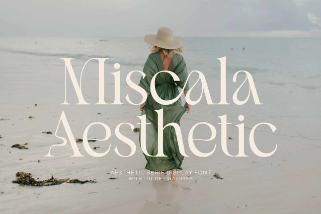 Miscala Aesthetic is a refined serif font that exudes elegance and sophistication. It perfectly combines classic design with modern aesthetics, characterized by pointed ends and elongated serifs, giving it a high-fashion yet elegant look.