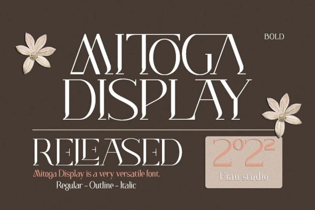Mitoga Display Font, is a very versatile font. perfect for magazine images, to wedding invitations, to branding, poster design, and more.