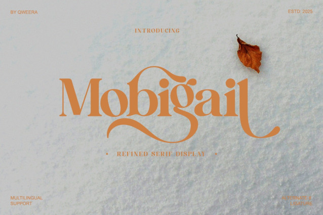 Mobigail Font a retro-modern serif designed to bring warmth, personality, and editorial elegance into your branding. Its soft curves, decorative ligatures, and refined contrast create a stylish yet professional look that feels premium and artistic. Perfect for designers who want a serif with nostalgic charm but modern structure — ideal for boutique logos, wedding branding, packaging, or magazine headlines. Font Features – Regular & Italic – Complete uppercase & lowercase – Stylish alternates + ligatures – Warm retro serif construction – PUA encoded – Multilingual support Perfect For Lifestyle branding, boutique visual identity, fashion logo design, packaging, wedding stationery, editorial layouts, and social media templates.