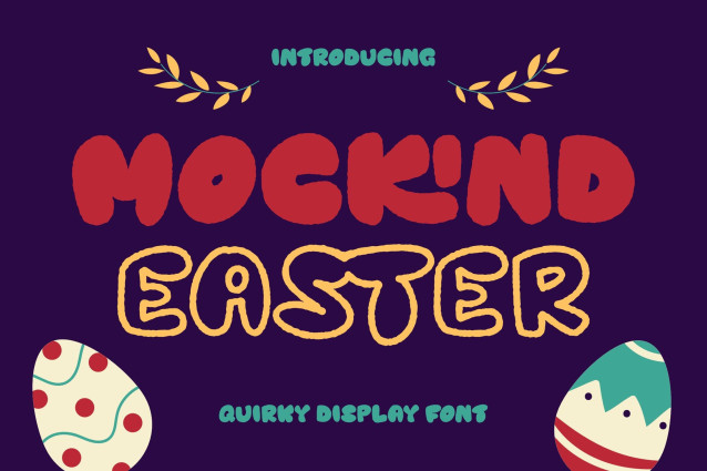 Mockind Easter Font – Quirky Display Font , from Perspectype Studio, suitable for any projects such as: logos, branding projects, homeware designs, product packaging, mugs, quotes, posters, shopping bags, t-shirts, book covers, name card, invitation cards, greeting cards, label, photography, watermark, special events, and all your other lovely projects that need a beautiful script taste.