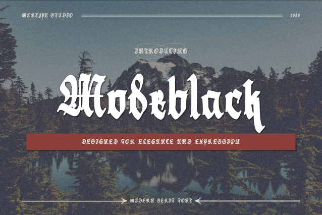 Modeblack Blackletter is a bold, ultra-realistic blackletter font. This unique look will appeal to a variety of craft projects, from letterheads and titles to stationery.