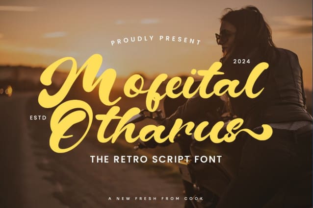 Mofeital Otharus Font is a bold, retro script font with a cool, vintage vibe. It has smooth curves and strong lines, making it perfect for eye-catching designs with a nostalgic feel.