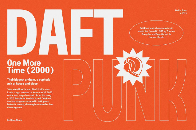 Mokla Font is a meticulous modern bold typeface, painstakingly designed to augment any modern-themed project. Its bold and vigorous aesthetics ensure your project stands out, embodying resilience and contemporary charm.