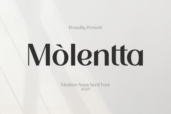 Molentta Font a modern sans serif font from the year 2025. The font is characterized by its sophisticated, high-contrast strokes, blending minimalist design with a touch of classic elegance, making it suitable for high-end branding and editorial use.