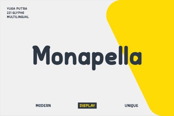 Monapella Display Font is a simple and natural sans serif font. It can easily be matched to an incredibly large set of projects, so add it to your creative ideas and notice how it makes them stand out!