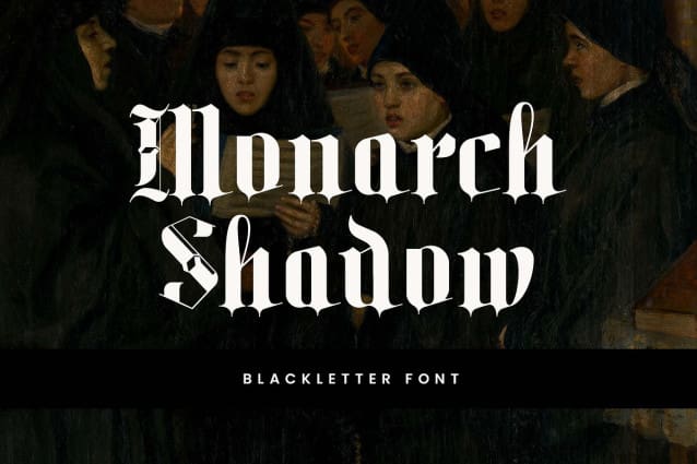Monarch Shadow Font – Monarch Shadow Blackletter Font. The modern display font feels beautiful classy, elegant, and stylish. This font is ideally suited for a wide variety of projects, such as signature, stationery, logo, wedding, typography quotes, magazine or book covers, website headers, branding, and more. Also, fashion-related branding or editorial design displays both masculine and feminine qualities.