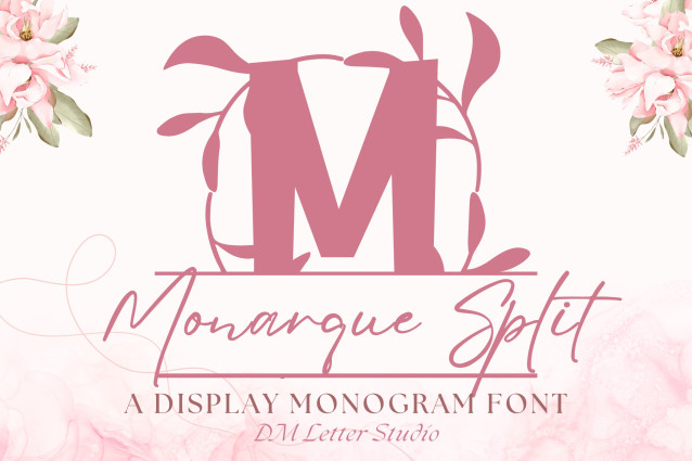 This font is used only for demos (Demo license). If you want to use this font for commercial use please contact: https://dmletterstudio.com/product/monarque-split-monogram-regal-serif-split-monogram-font/