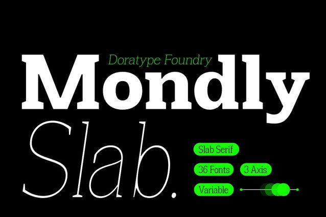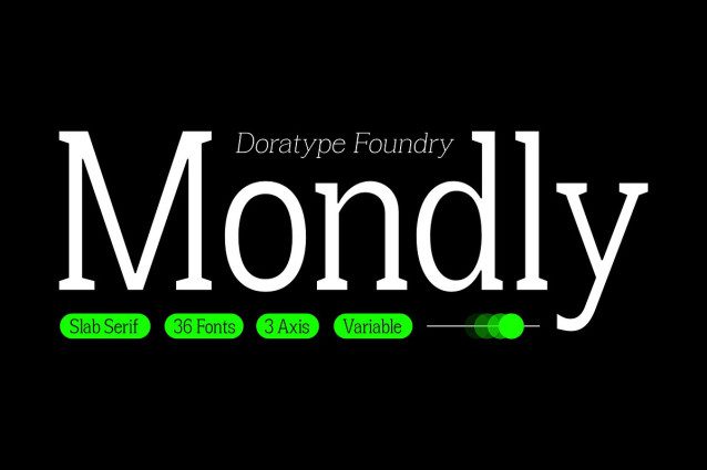 Mondly Font is a contemporary slab serif typeface that strikes a balance between strength and elegance. With its bold, square serifs, it conveys a strong and authoritative character, yet maintains elegant proportions that make it flexible for a variety of design needs. Featuring 36 styles, 3 variable axes, and variable font support, Mondly Slab is ideal for titles, visual identities, branding, and modern publications that require strong, yet aesthetically pleasing, professional typography.