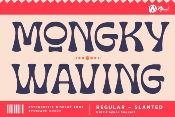 Mongky Waving Font: A Mesmerizing Psychedelic Display Font Transport your designs into a realm of captivating psychedelia with MongkyWaving, an enchanting display font designed to infuse your projects with an electrifying vibe. Its hypnotic swirls and dynamic strokes command attention, lending an otherworldly charm to your visual compositions. MongkyWaving stands out for its dual versions – the regular and slant – offering you the freedom to experiment and create designs that oscillate between structured sophistication and whimsical flair. This font is a celebration of creativity, enabling you to craft designs that transcend boundaries and ignite the imagination. Discover the key features of Mongky Waving: