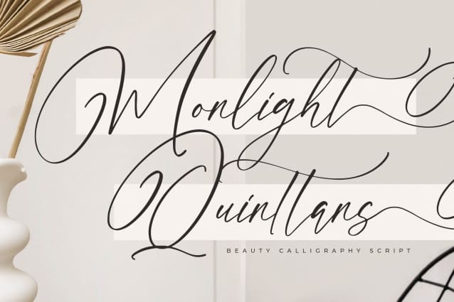 Monlight Quinttans Font – Beauty Calligraphy Script , from Letterena, is a Luxury Script font, suitable for any projects such as: logos, branding projects, homeware designs, product packaging, mugs, quotes, posters, shopping bags, t-shirts, book covers, name card, invitation cards, greeting cards, label, photography, watermark, special events, and all your other luxury and beautiful projects that need a Luxury Script taste.