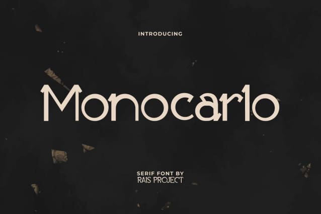 Monocarlo Font is a uniquely stylish sans serif display font with a weird yet luxurious look. This font has extra short line at the end of the letters and gives it an interesting feature. It will work well in many designs, such as brand image, cover, custom design, greeting card, invitation, label, menu, poster, product packaging, quote, signage, stamp, web, and more!