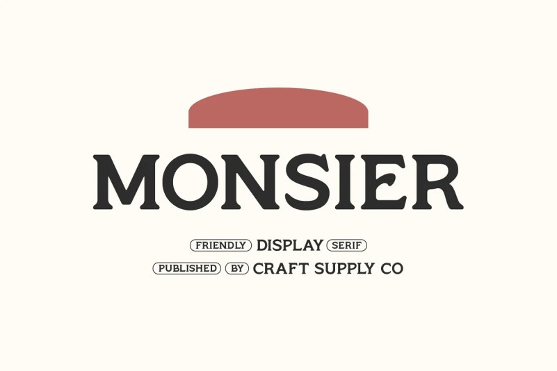 Monsier Font – Friendly Display Serif is a heavy serif font family whose design refers us to the style of modern serif. The distinctive features of Monsier – Friendly Display Serif are the relatively low contrast of strokes, the slightly squarish shapes of round characters and the emphasized business like simplicity.