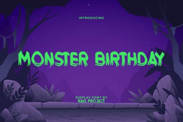 Monster Birthday Font is a creepy cute playful decorative font with fun gaming created by RaisProject. This font can give a spooky and adorable impression, depending on the colors you choose for the design. It would be good for your design, such as book cover, brand image, comic, invitation, menu, poster, website page, and more!