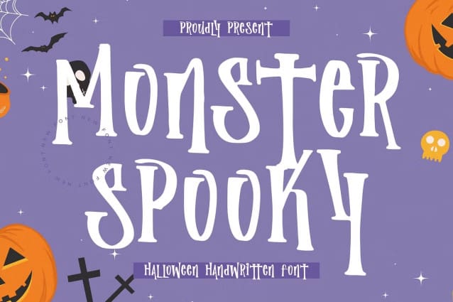 Monster Spooky Font, from Integritype Studio, perfect for any project like: logos, branding projects, homewares designs, product packaging, mugs, quotes, posters, shopping bags, t-shirts, covers books, business cards, invitation cards, greeting cards, labels, photography, watermarks, special events and all your other luxury projects that require a premium taste.
