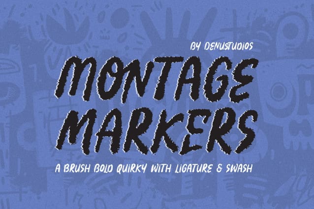 Montage Markers Font | Brush Bold Quirky, from Denustudios, suitable for any projects such as: logos, branding projects, homeware designs, product packaging, mugs, quotes, posters, shopping bags, t-shirts, book covers, name card, invitation cards, greeting cards, label, photography, watermark, special events, and all your other lovely projects that need a Brush Bold Quirky taste.