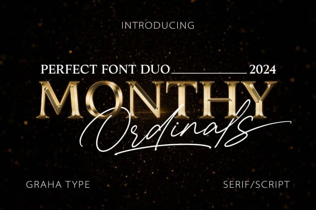 Monthy Ordinals Font Duo is a stylish combination of script and serif fonts, perfect for various design applications. It’s great for use in posters, magazines, logos, merchandise, social media, and branding. Its flexibility allows it to enhance visual messages and brand identities across different design contexts effectively.