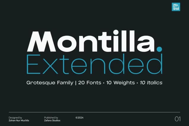 Montilla Extended Font is a versatile typeface designed clean and geometric with minimal decoration, making it easy to read and suitable for a variety of applications. It has a neutral and unobtrusive design, making it ideal for professionals and contemporary where clarity and efficiency are key. Montilla is ideal for corporate branding, editorial design, user interfaces, advertising, signage, product packaging, educational materials, and creative projects, among others. With 10 weights from thin to heavy, Montilla offers a wide typographic spectrum, allowing for customized emphasis and hierarchy in body text accompanied by 10 matching italics.