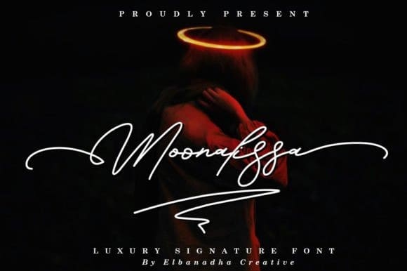 Moonalissa Signature Font, is a dazzling script font. This font is neatly crafted and highly detailed. Whatever the topic, this font will be a wonderful asset to your font library, as it has the potential to enhance any creation.