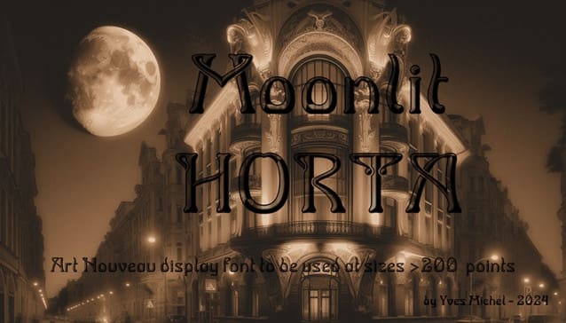 So I wanted to create a font in this spirit, without falling into copying or imitating it too easily. I named it Victor Horta, in tribute to our great Belgian architect, a disciple of Eugène Viollet-le-Duc, a precursor of Art Nouveau. The present derived font is “in the moonlight”.