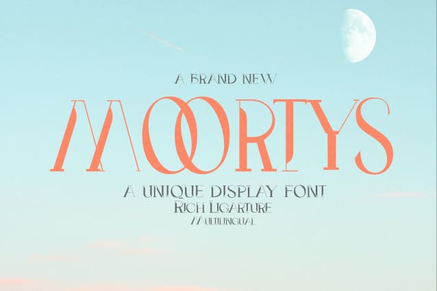 Moortys Font, a one-of-a-kind display font exuding an elegant, contemporary vibe. This bold creation is available in six dynamic forms: Expanded, Expanded Italic, Regular, Italic, Tall, and Italic Tall. Ideal for use in branding, typography, gaming, arts and crafts, and various font needs. With Moortys’ signature allure and adaptability, watch your designs reach new heights.