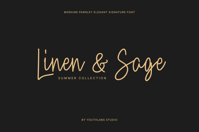 Moraine Parnley Handwriting Font is an elegant signature font that strikes the perfect balance between artistic flair and professional poise. Designed by Youthlabs Studio, this typeface features elongated strokes and a fluid, rhythmic flow that mimics the effortless motion of a fountain pen. It is specifically crafted for projects that require a touch of exclusivity and personal connection. Whether you are building a premium lifestyle brand, designing sophisticated event stationery, creating high-end product packaging, or developing a stylish personal watermark, Moraine Parnley adds a refined, human element that feels both timeless and modern.