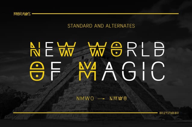 Moraws Font! an ethnic Stencil San Serif font by Drizy! It suits the ethnic theme of your project. Moras Features: Upper and lower case Number Multilingual Substitutes Ligatures and punctuations