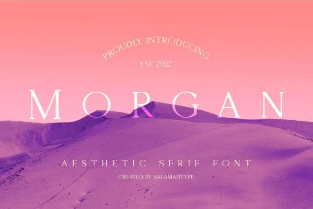 Morgan Aesthetic Serif Font, which is a serif font consisting of 4 styles. Morgan is an elegant and clean font suitable for a variety of your business needs, from product packaging, product branding, logos, books, labels, wedding invitations and more.