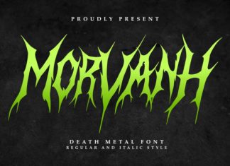 Morvanh Font — a razor-sharp Death Metal Font that bleeds with intensity and raw energy. Designed for artists, bands, and creators who crave extreme visual power, Morvanh brings a natural, aggressive, and organic look that embodies the essence of underground metal culture.