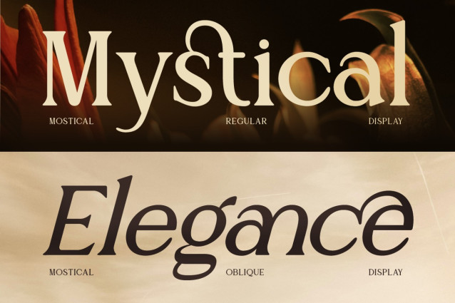Mostical Font, an elegant serif font with a touch of magic! Come with 2 styles: Regular and Oblique, make your project more classy and artsy. Also designed with beautiful ligatures and graceful alternates, make it adds a timeless and luxurious touch of any project. Mostical brings a perfect mix of elegance, mystical vibes, and a little bit of drama to your creative projects. Perfect for luxury branding, fashion logos, editorial layouts, wedding invitations, and even high-end packaging.