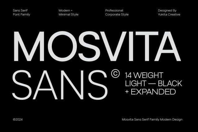 Mosvita Complete Family – Mosvita Sans Serif Modern is a font designed with contemporary beauty and readability as top priorities. It offers incredible flexibility with 14 styles, consisting of 7 normal widths and 7 expanded widths, making it a perfect choice for a variety of design projects.