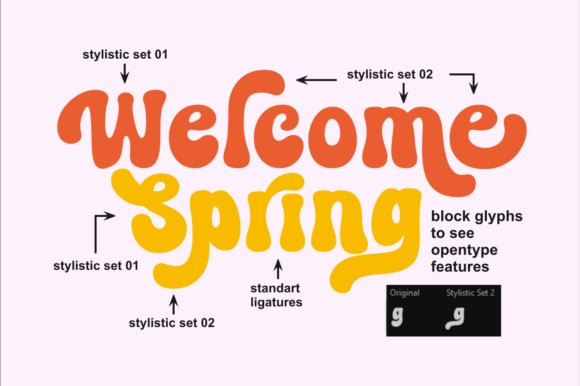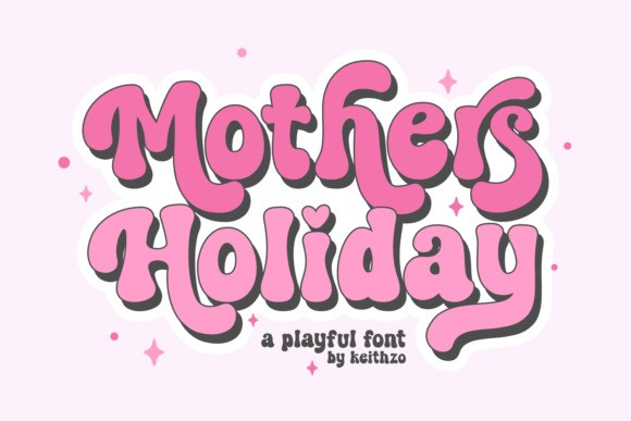 Mother’s Holiday! This isn’t just a font, it’s a time machine to groovy days and playful moments. Packed with charming alternates and extra glyphs, it’s your secret weapon for crafting eye-catching designs that scream fun. Perfect for everything from whimsical birthday invites to vintage-inspired merch, Mother’sHoliday turns ordinary projects into extraordinary celebrations.