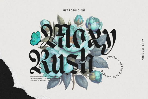 Dynamic Swaying Style: “Moxy Rush” is not your ordinary blackletter font. Its unique design boasts a dynamic swaying style that breathes life into your text. Every character exudes a sense of movement, adding a touch of excitement and energy to your compositions.