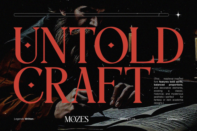 Mozes Font Family a dynamic and powerful Variable serif font. Designed for 2025, Mozes blends classic beauty with the strength of modern expression. Highly adaptable to various styles, Mozes captures the essence of heritage and bold expression. Complete with alternate characters and ligatures, Mozes offers exceptional flexibility for your design projects. More than just a font, it is a statement of elegant and memorable style.