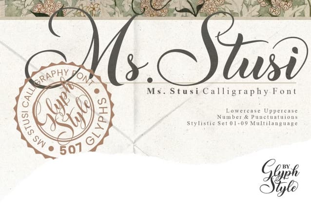 Ms Stusi Font is a calligraphy font with aesthetic curves. It has beautiful curves on each letter, also equipped with a varied stylistic set to support creativity.