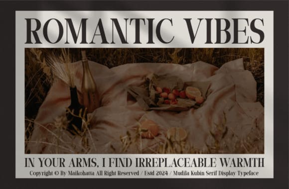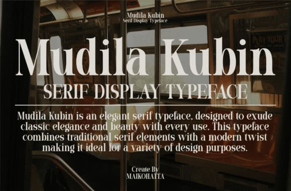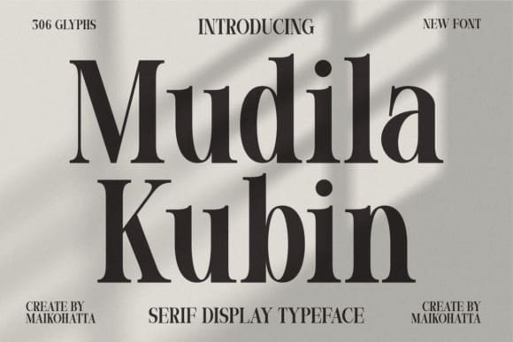 Mudila Kubin Font – Serif Display Typeface. This font features a balanced proportion of stroke thickness and fineness, creating attractive and easy-to-read visuals. This modern serif style is often characterized by a bold distinction between thick and thin lines, providing a touch that is understated but still stands out.