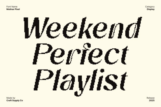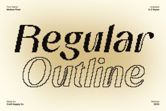 Enhanced with a pixel-inspired texture, this font brings a contemporary digital edge to its classic design. This pixel detailing adds a modern, tech-forward personality, making the font ideal for digital branding, websites, editorial projects, and creative campaigns.