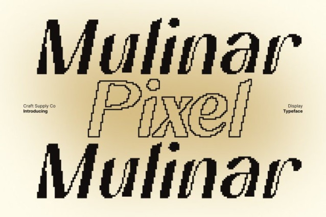 Mulinar Pixel Font This is a modern sans serif display font inspired by the graceful curves and ornamental beauty of Art Nouveau design. Its clean, contemporary lines bring sophistication and visual harmony, making it a font that is both elegant and captivating. Each character balances decorative flair with modern minimalism, resulting in a stylish and versatile typeface.