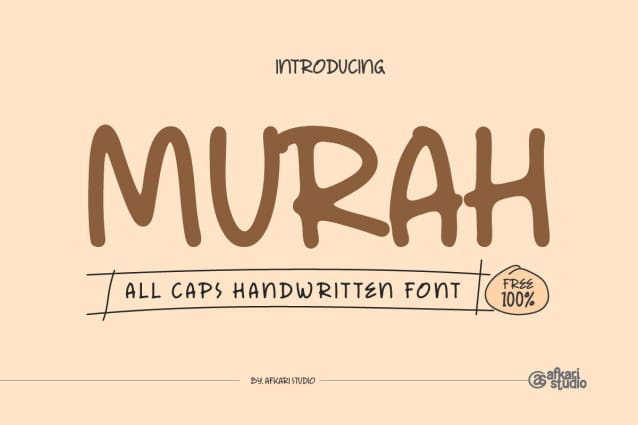 Murah font showcases a Handwritten style, allowing for seamless integration into diverse applications such as product packaging, branding endeavors, magazines, social media platforms, weddings, or any setting where words merge harmoniously with the backdrop.