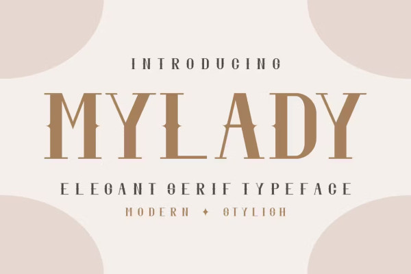 Mylady Font is a modern and elegant serif font. Mylady is well-suited for advertising, branding, logotypes, packaging, titles, headlines and editorial design.