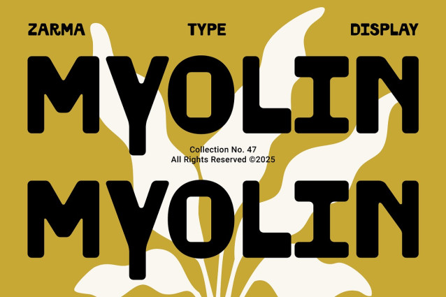 Myolin Font is a bold experimental display font with playful curves and distinctive letterforms, perfect for designers seeking a retro-modern statement. Its quirky yet solid structure makes Myolin ideal for branding, packaging, and editorial visuals that demand attention. Inspired by bold geometric styles with a contemporary twist, Myolin’s high-impact shapes bring personality and fun to every design application.