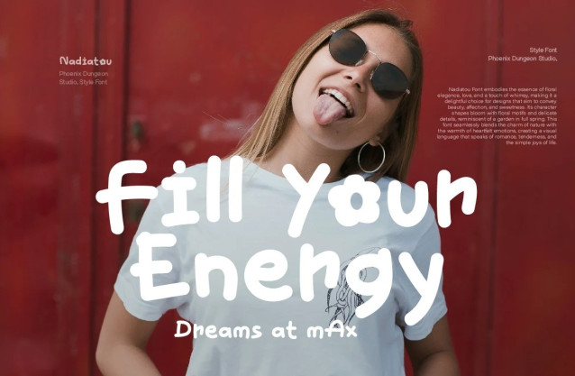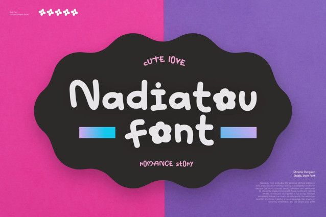 Nadiatou Font is a delightful handwriting font that combines natural elegance with a youthful, whimsical charm. Its flowing, hand-drawn letterforms are adorned with subtle floral and candy-inspired elements, creating a playful and inviting aesthetic. The font’s gentle curves and vibrant details evoke a sense of blooming freshness and sweet delight, making it perfect for projects aimed at a young audience. Ideal for cheerful branding, creative invitations, and fun-themed designs, Nadiatou infuses any project with a lively, youthful spirit and a touch of natural beauty.