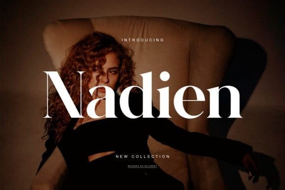 Nadien Font – Modern Sans Serif Typeface inspired by the famous minimalist logo perfect for design templates, brochures, videos, advertising branding, logos, invitations, layout design, elegant crafting, beauty design, and others.