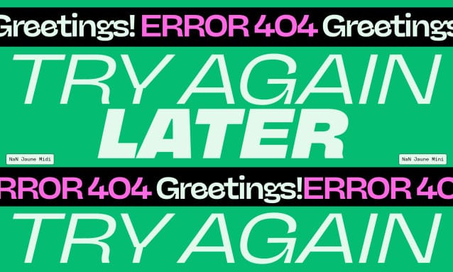 NaN Jaune Font Family is a collection of three sub-families, one per optical size. Closed apertures, display for text and text for display, Jaune follows this NaN motto: take a bad idea and do it well, or at least die trying. If one typically avoids colliding glyph anatomy then Jaune looks at the problem upside down and sticks together that which normally shouldn’t touch.