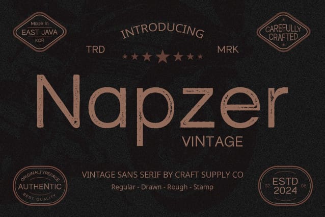 Napzer Vintage Font: Embracing Retro Vibes. Low Contrast Sans Serif Napzer Vintage presents a low contrast sans serif typeface, offering a balanced and uniform appearance across all characters.