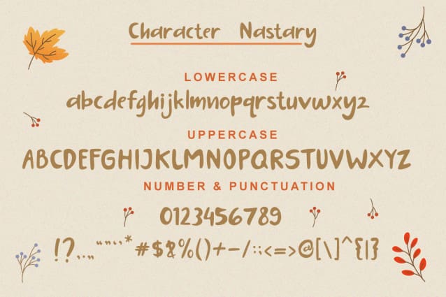 Nastary Hand Font is a unique and cute display font. Whether you are using it for cartoon-related designs, children’s games, quotes, titles, brand names, book covers, posters, or just any creation that requires a touch of beauty, this font is a great choice.