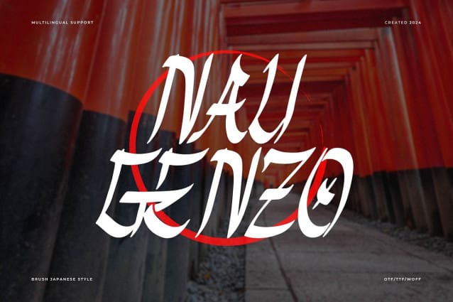 This font is used only for demos (Demo license). If you want to use this font for commercial use please contact: https://creativemarket.com/Denustudios/283681294-Nau-Genzo-Brush-Japanese-Style?u=fontlot123