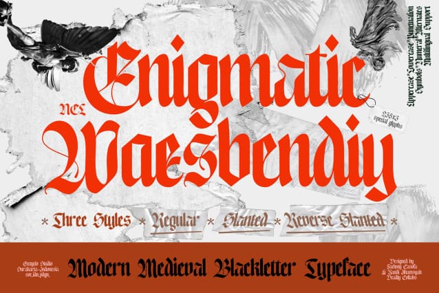 NCL Enigmatic Waesbendiy Font is a modern medieval blackletter font. The letters are inspired from the middle ages with a blackletter style but have modern touch. Very suitable for creative projects that have a medieval theme or contemporary designs but have a modern-classic touch. Its modern aesthetics bring a whole new dimension to your designs, making them stand out. Whether you’re working on a website, poster, logo, or any other project, this font adds that extra touch of innovation and sophistication.